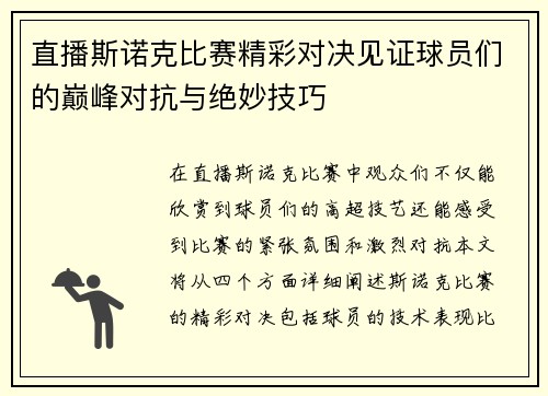 直播斯诺克比赛精彩对决见证球员们的巅峰对抗与绝妙技巧